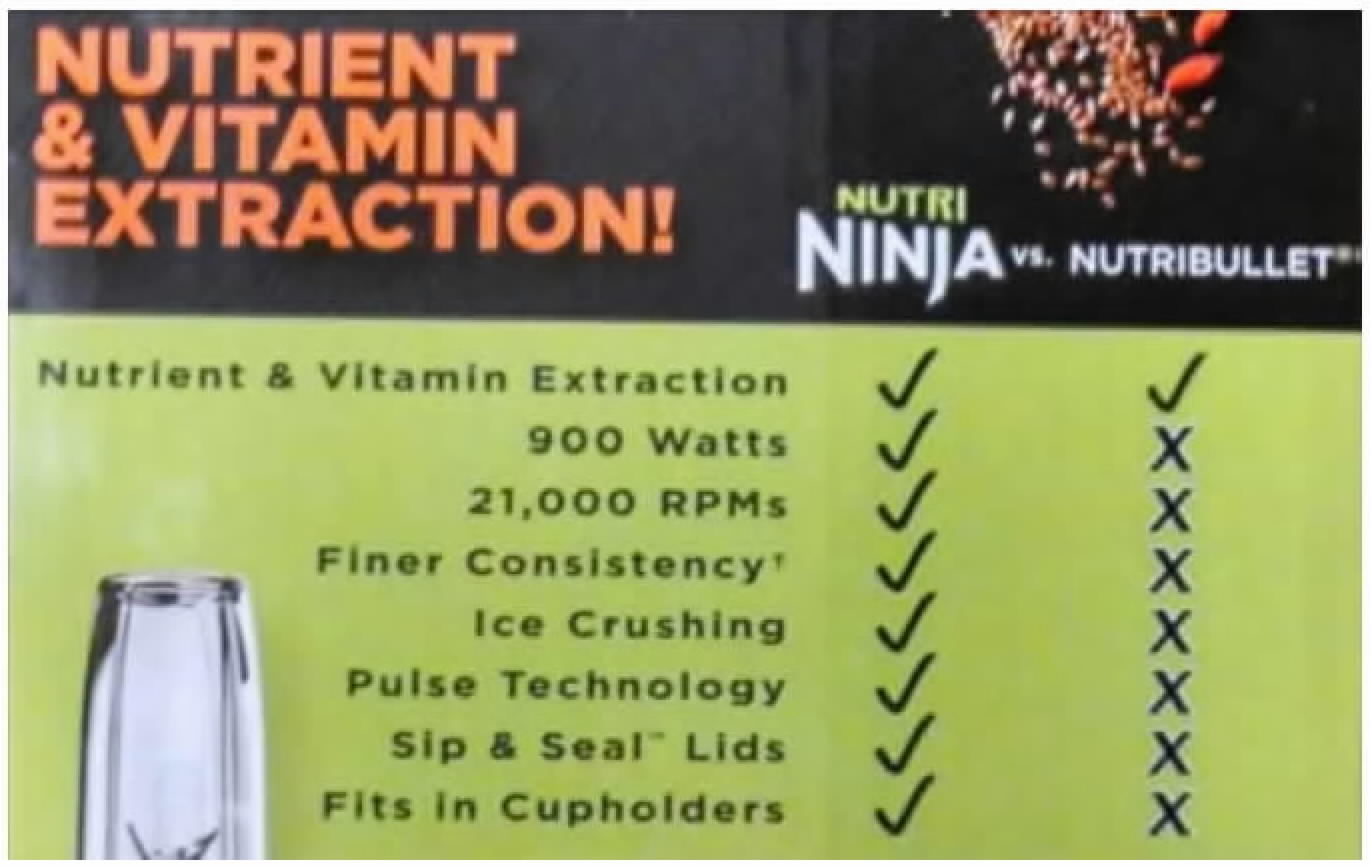 Nutri Ninja Pro, which is sold near Nutribullet blenders on retailers’ shelves. Homeland challenged a comparison chart, “Nutri