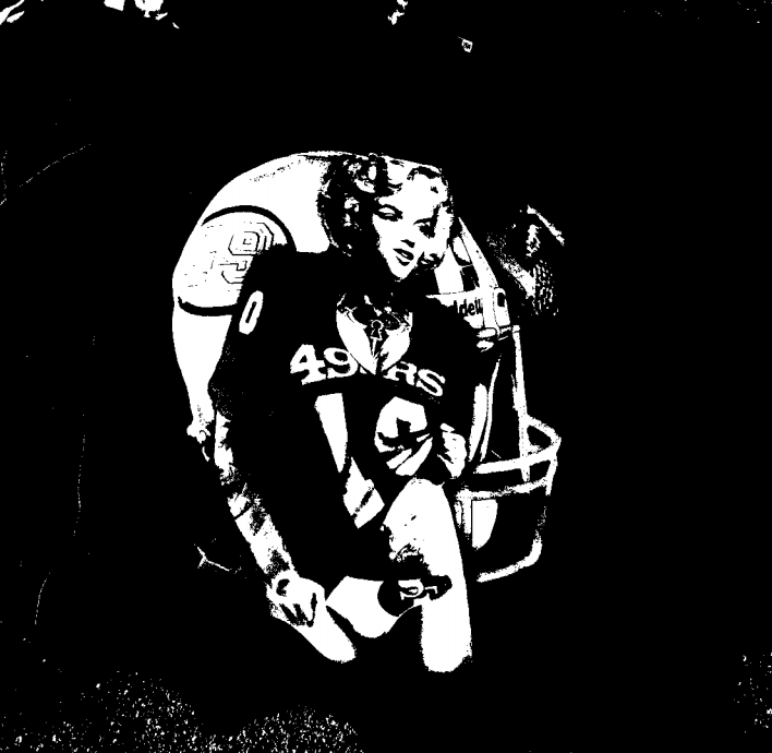 Based on a quick Google Images search, it looks like there's a whole genre of sexy-Marilyn-Monroe-wearing-your-team's-jersey (or whatever... in the b/w image you got, she's also wearing 49ers underpants).