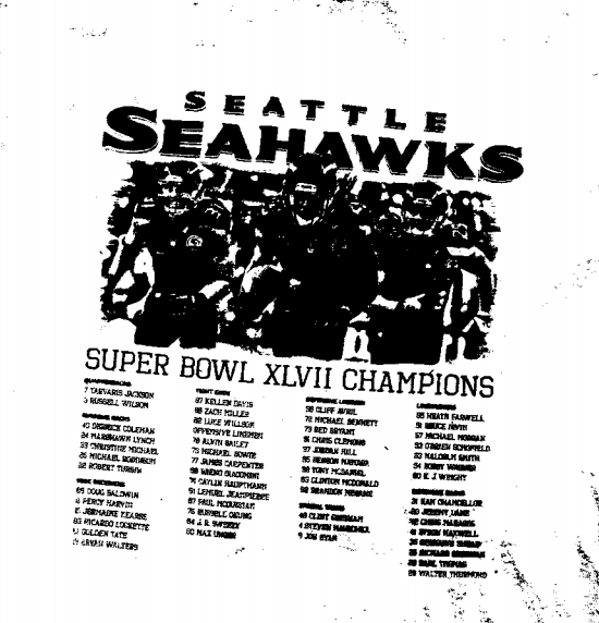 Certainly, many of the photos showed counterfeits, including counterfeit tags claiming to be genuine NFL etc. merchandise. With the caveat that the organization of the production makes start/endpoints for different seizures difficult to determine, there was one seizure centering on Seattle Seahawks merchandise that didn't follow this pattern. There didn't seem to be counterfeit tags--ICE didn't produce photos of tags for this seizure, and their practice is apparently to photograph tags when they might be counterfeits. Some of this merchandise bore Seahawks logos alone; others involved Seahawks-related images, or a logo plus other positive/fannish commentary. Many of those shirt didn't look particularly official to me; they might make good examples for discussion of trademark as a pure merchandising right, which ICE is helping to protect.